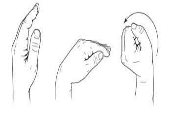 • ورزش (3): انگشتان دست خود را همیشه آرام نگه دارید. مچ دست خود را صاف کنید و به آرامی اجازه دهید مچ دست شما به جلو شل شود (انگشتان دست خود را به طور طبیعی صاف کنید). سپس مچ دست خود را به آرامی بکشید و به حالت اولیه بازگردانید (انگشتان شما به طور طبیعی خم خواهد شد).